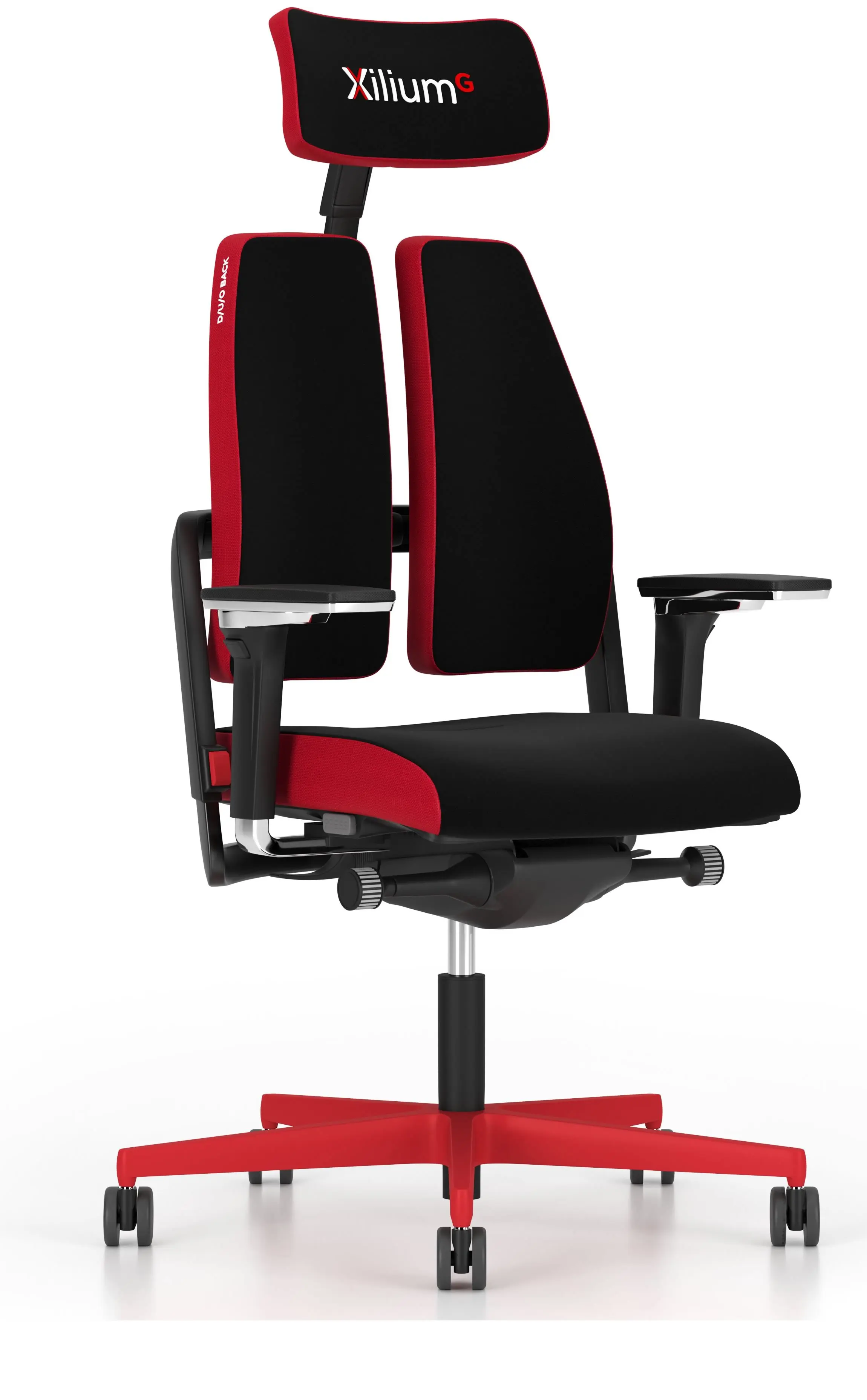 Xilium Duo Back Gaming Stuhl - überlegenes Spiel durch ergonomische Duo-Back-Rückenlehne & X-Move-Technologie & Kopfstütze. Reduziert Wirbelsäulendruck um 50% durch innovative Duo-Back-Rückenlehne – synchroner Bewegungsablauf mit seitlicher X-Move-Kurvenlage für maximale Freiheit beim Gaming & gesundes, dynamisches Sitzen im Homeoffice. 4D-Armlehnen (360° verstellbar in Höhe, Breite, Tiefe & Winkel), extrem stabile 150kg Belastung, hochwertiges Aluminium-Fußkreuz. Bleiben Sie länger konzentriert im Spiel ohne Rückenschmerzen oder Verspannungen. Blue & Red Edition verfügbar. Auf welcher Seite stehen Sie?