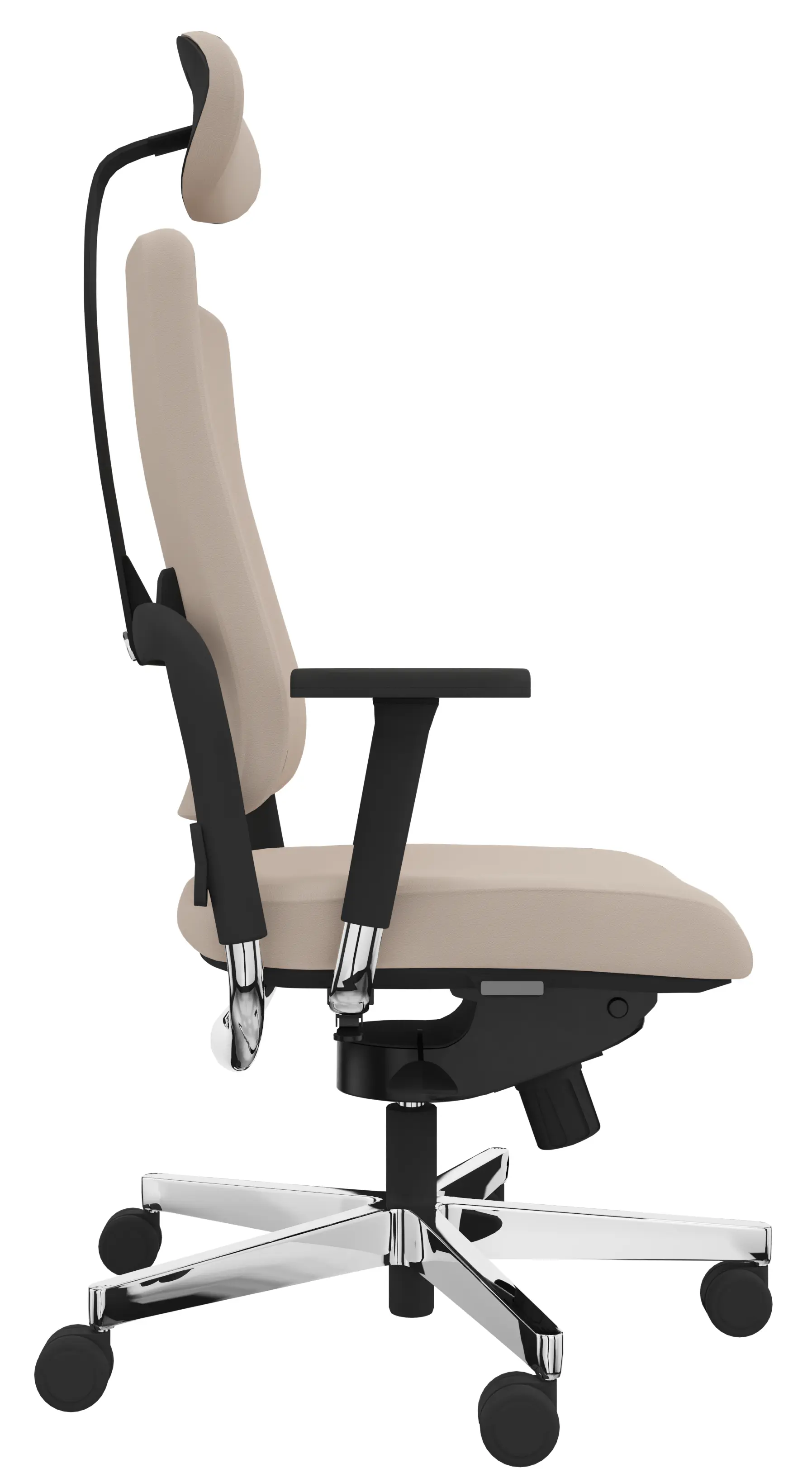 Für den Xenium Drehstuhl stehen verschiedene Gasfeder-Varianten zur Auswahl. Die Standard-Gasfeder bietet die übliche Sitzhöhe für den Büroalltag. Auf Wunsch ist eine höhere Säule (+4 cm) verfügbar - ideal für große Personen ab ca. 190 cm auf Anfrage. Für zusätzlichen Komfort empfehlen wir die Gasfeder mit Tiefenfederung: Sie dämpft das Einsitzen spürbar und ermöglicht eine besonders sanfte Höhenanpassung.Sitzfläche mit Seitenboden - klare Linien, hochwertige Optik