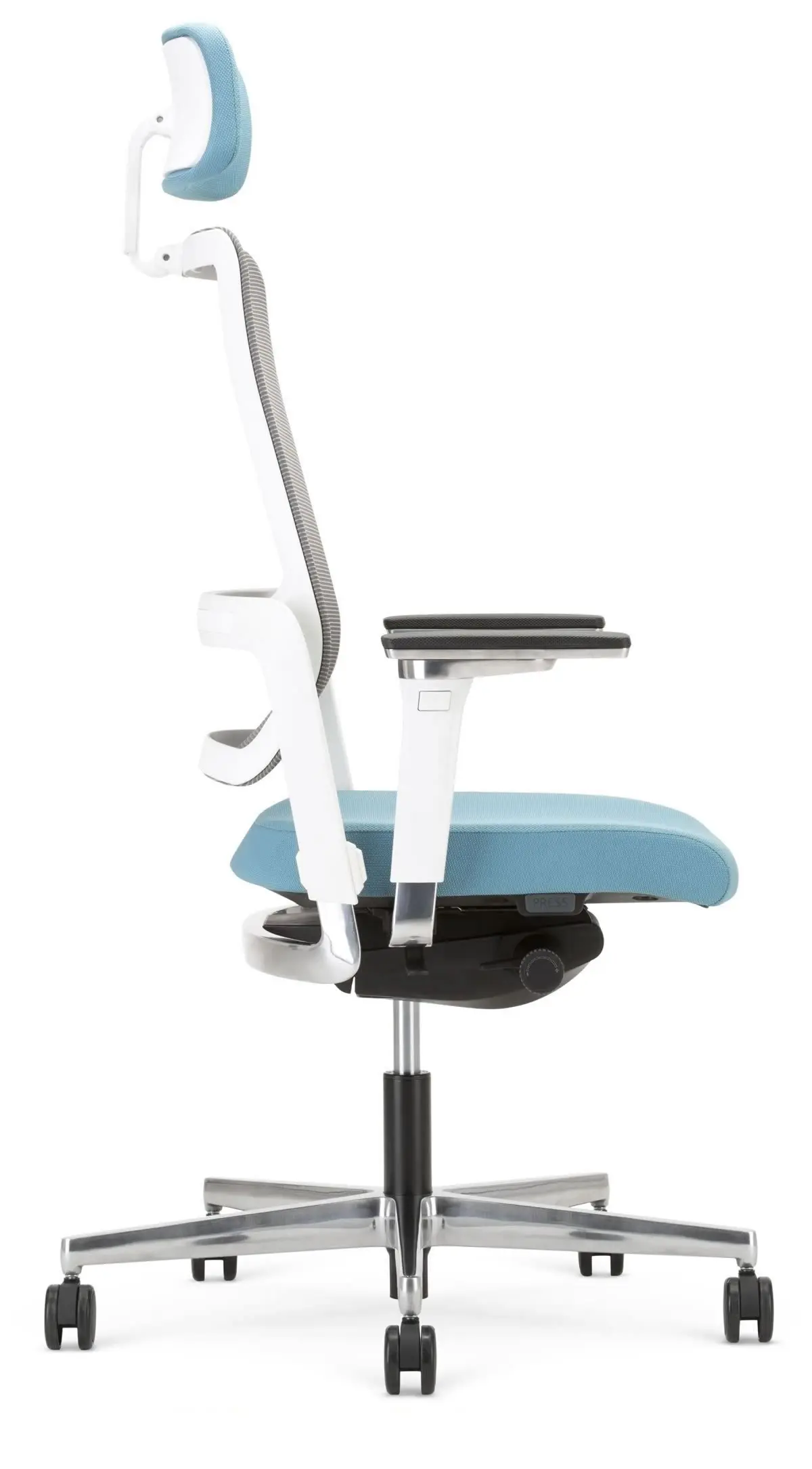 - Kopfstuetze: 60 mm hoch (7 Pos.), 96 Grad schwenkbar mit Stoff-/Mesh-/Kunstleder-/Leder- Bezug und Seitenboden - Nacken total entlastet.