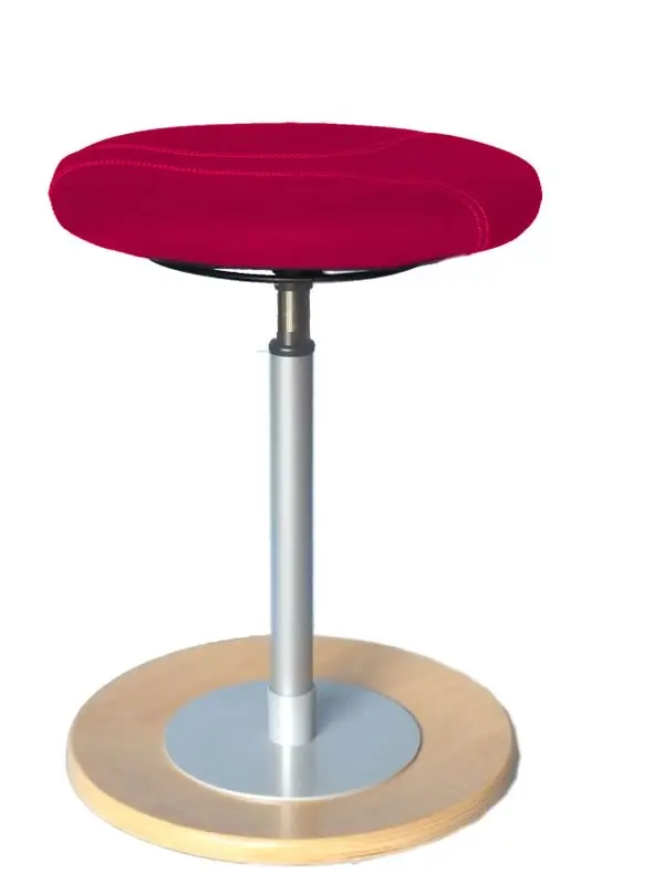Ergonomischer Stehhilfe - Pendel Hocker mit Rundsitz: -- Gepolsterter Rundsitz, - 360° Bewegungsfreiheit, - stufenlose Höhenverstellung durch Sicherheitslift (LGA geprüfter Lift), - Bodenplatte Buche naturfarbig, - Antirutschbelag schlierenfrei, - Ringauslöser, Sitzhöhe von 54 - 80cm, - Stoffgruppe laut Farbkarte.