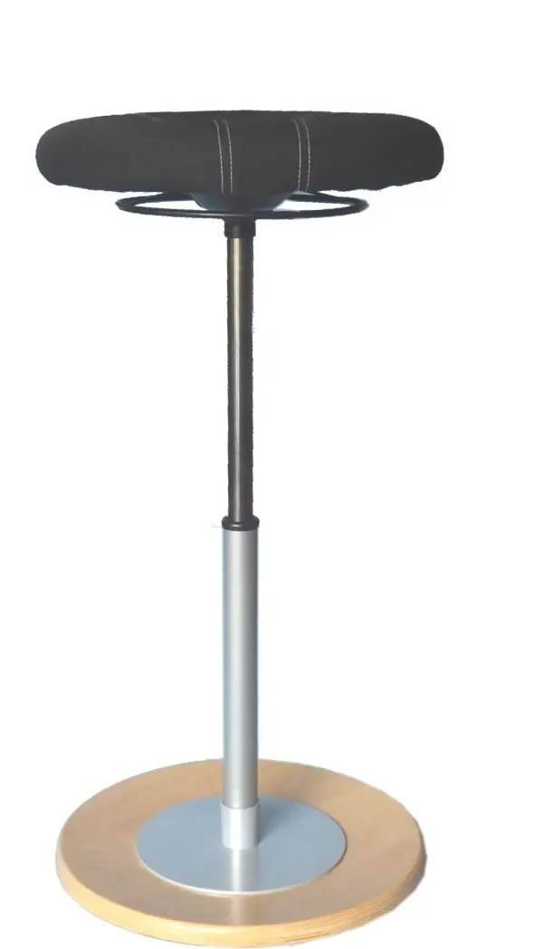 Günstige Stehhilfe - Pendelhocker mit gepolstertem Rundsitz für gesundes Sitzen / Stehen mit 3 dimensionalen Bewegungen. Die günstige Stehhilfe bietet durch die 360° Freiheit angenehmes angelehntes Stehen oder auch Sitzen bei der Verwendung als Pendelhocker. Ideal ist die Kombination der Stehhilfe mit einem höhenverstellbaren Schreibtisch. Eine große Farbauswahl rundet diese Stehhilfe perfekt ab.